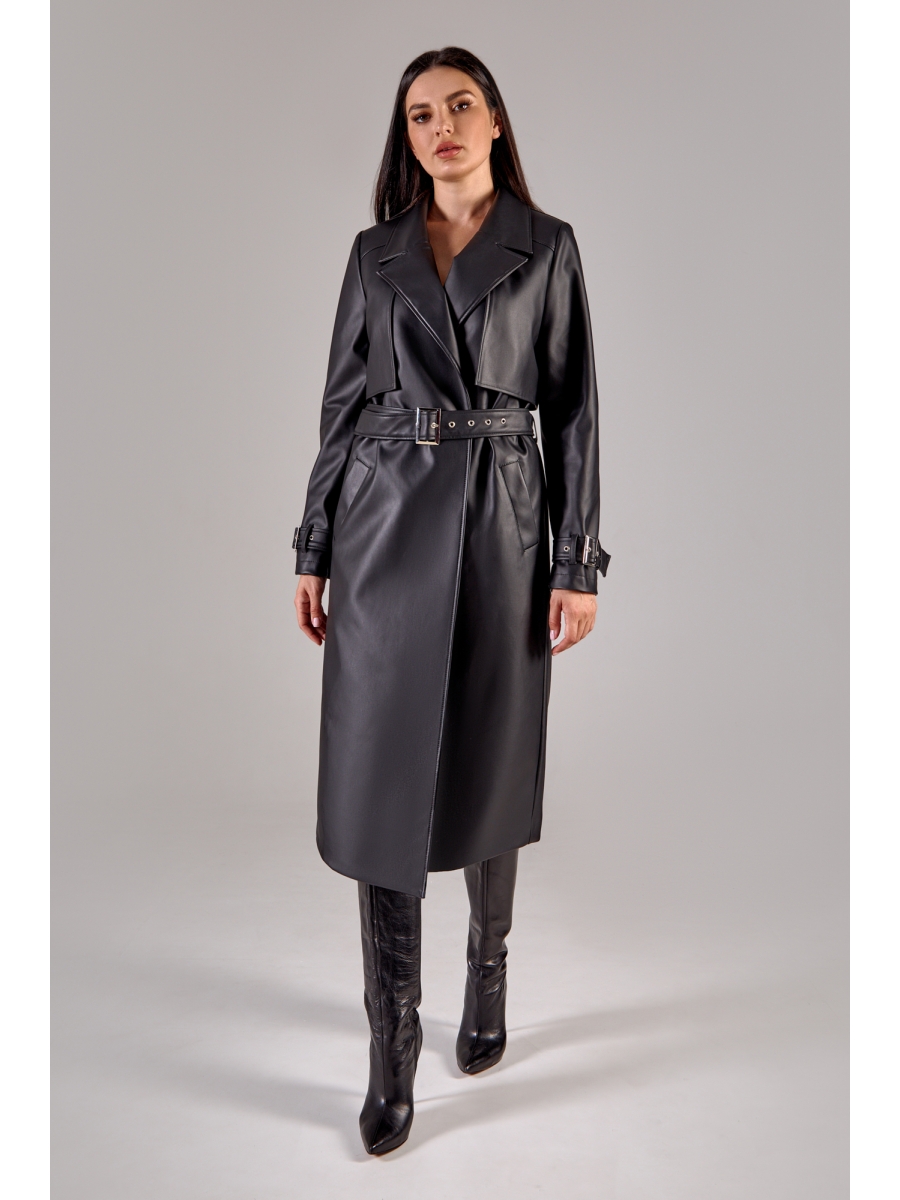 Оформить заказ →Плащ женский прямого кроя, на подкладке, выполнен из эко - кожи; по переду прорезные карманы, отлетные кокетки; рукава втачные, по низу рукава декоративная пата с пряжкой и блочками; воротник пиджачного типа; по спинке отлетная кокетка; в боковых швах шлевки для съемного пояса.