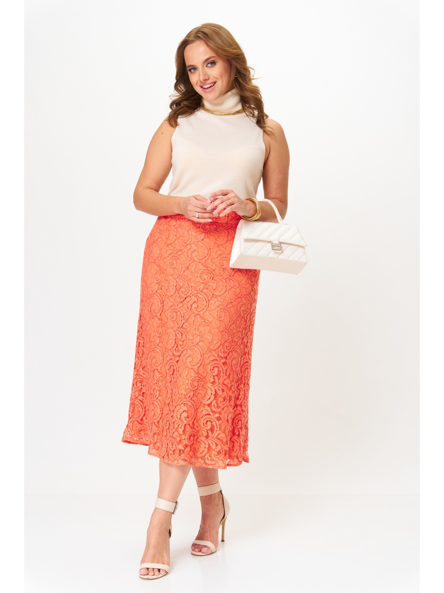 Юбка женская из гипюра для повседневной носки и торжественных случаев . Юбка расширена к низу , длиной ниже колена . Застежка на потайную молнию и вставки из эластичной тесьмы по бокам пояса, подчеркивают линию талии .