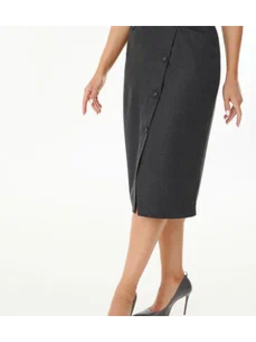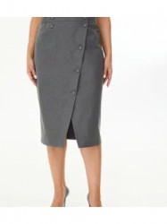 Повседневная юбка прямого силуэта слегка зауженная книзу. Спереди - фигурная планка с застежкой на пуговицы. Пояс прямой, сзади резинка."
