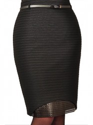 Юбка на подкладке из трикотажного полотна. По переднему полотнищу внизу арочка и вставка из перфорированной эко-кожи. Высота вставки 7см по центру юбки. По спинке вытачки, центральный шов, молния потайная и шлица. Ткань хорошо тянется, не мнётся,износостойкая. Ремень в комплект НЕ входит.