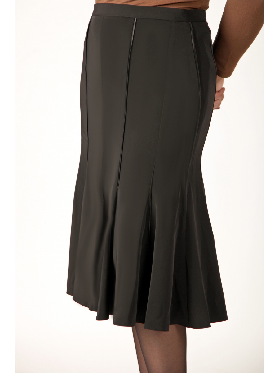Юбка из 12 клиньев,на подкладке.Ширина пояса 3см,застегивается на 1 пуговицу и потайную молнию.В швы вшита атласная тесьма шириной 5мм.Объем талии 82-86-90-95-100-105,объем бедер 106-110-114-119-124-129,длина изделия во всех размерах 71 см.