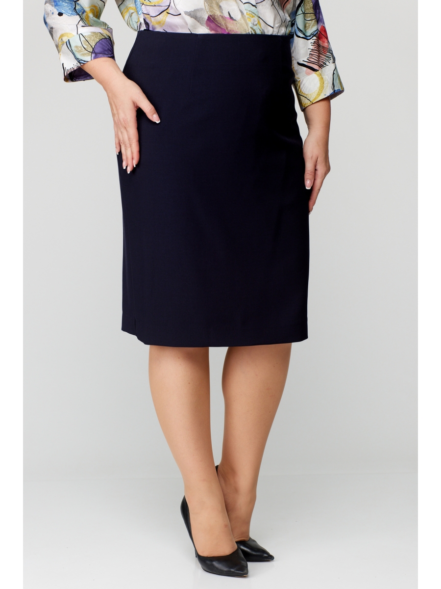 Юбка прямого силуэта, из текстильной ткани, верхний срез юбки обработан обтачкой, заднее полотнище со средним швом, застегивается на потайную молнию. Шов переходит к низу в шлицу. По переднему и заднему полотнищах обработаны таливые вытачки. Длина по боковому шву 66 см. Юбка на подкладке.