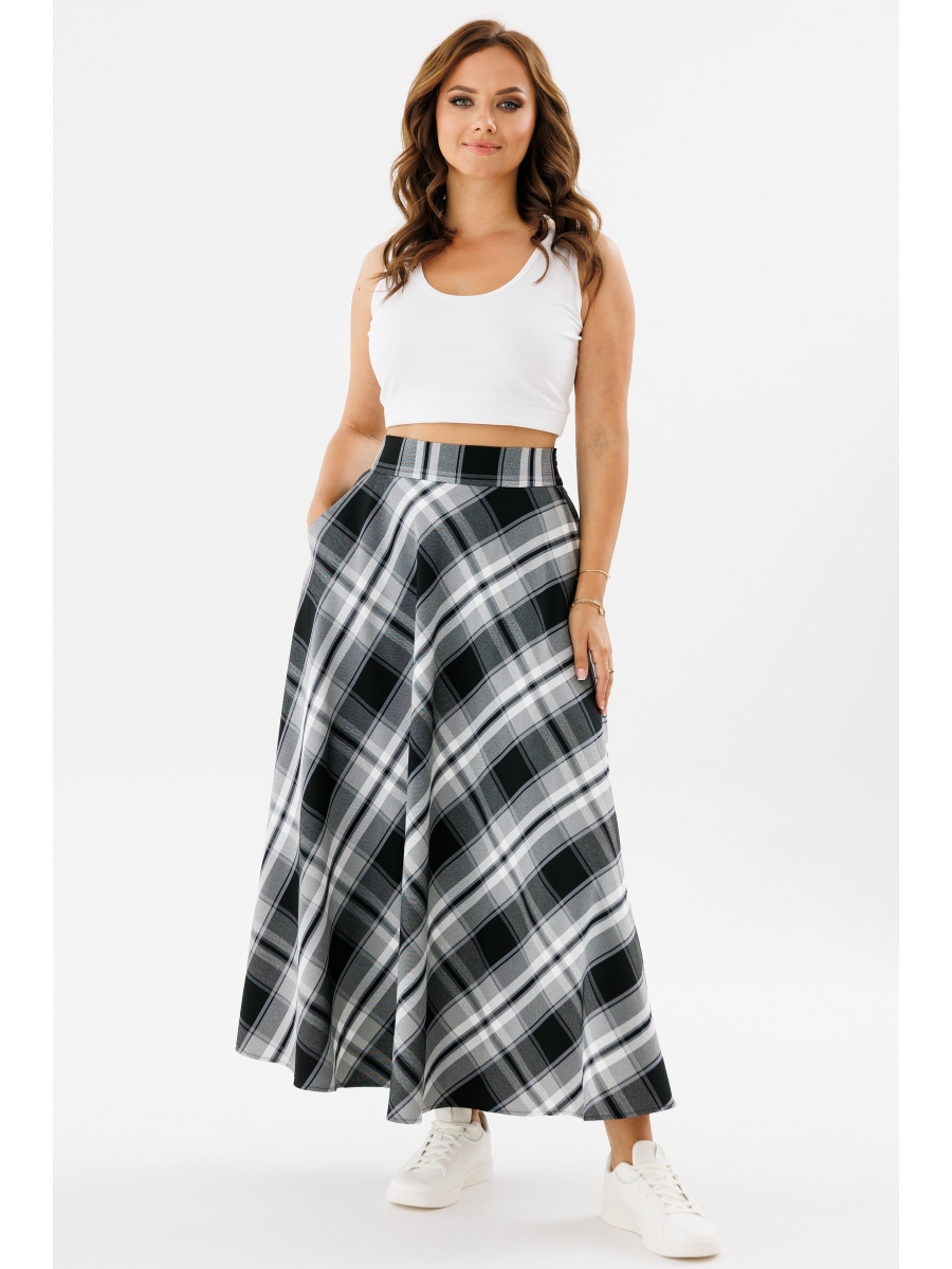 Эффектная женская юбка из плательной ткани в клетку - универсальная одежда на все случаи жизни. Юбка кроя полусолнце с легкостью впишется в любой образ, добавив нотку женственности и романтики. Она прекрасно комбинируется с вещами в классическом стиле или повседневном casual стиле. Струящаяся ткань скроет недостатки фигуры и эффектно выделит достоинства.