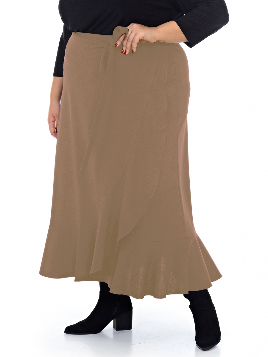 Роскошная юбка с запАхом из крепа с эластаном По закругленному срезу переда и нижнему срезу юбки проходит волан.