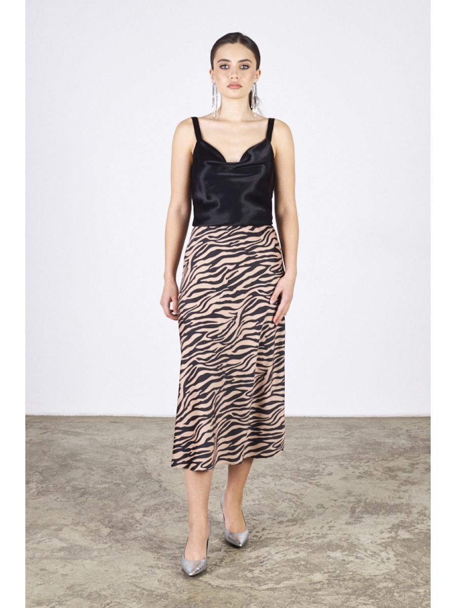 Юбка, слегка расширенная книзу из атласной ткани. Крой юбки по косой, на линии талии скрытая резинка.