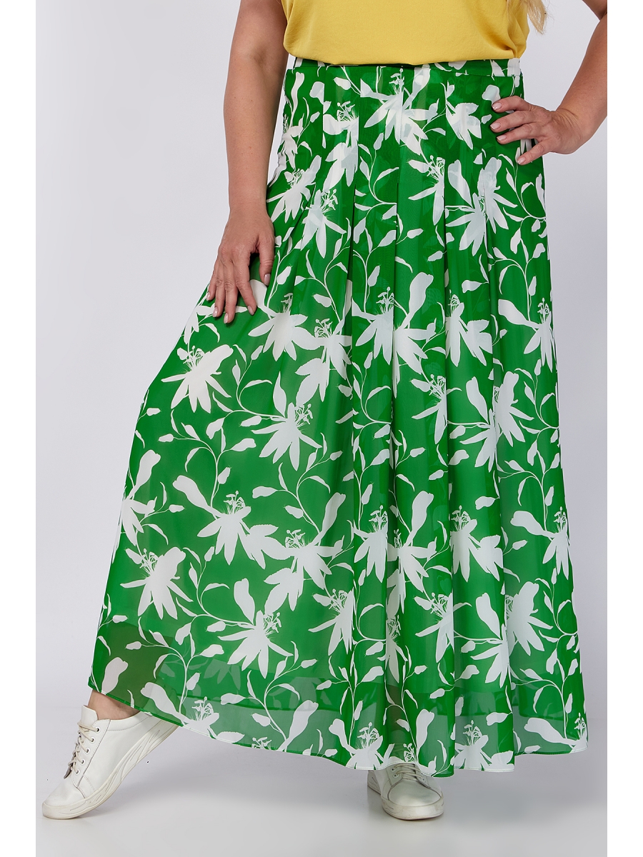 Комфортная, нарядная, длинная юбка-трапеция из шифона с обработанными бантовыми складками по талии. В боковой шов вставлена потайная молния. Юбка на поясе на петлю и пуговицу и частично на резинке. Лаконичный и элегантный фасон позволит носить его в повседневной жизни, а также как праздничный или вечерний наряд.
