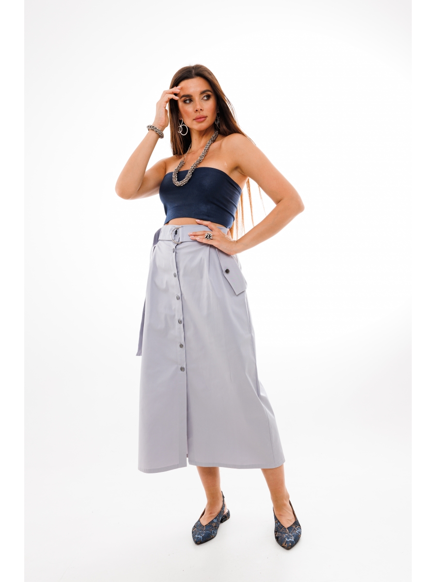 Длина миди придает юбке изысканность и подчеркивает женственные очертания.