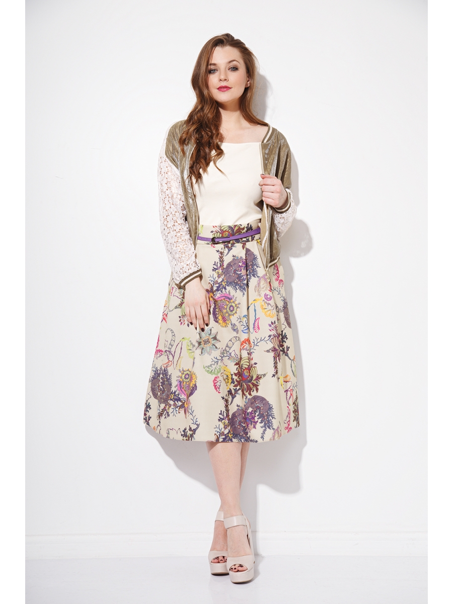 Оформить заказ →Юбка миди А-силуэта из набивного текстильного полотна со складками спереди, широким поясом из ткани по талии, боковыми карманами и застежкой на потайную молнию сзади. В комплекте пояс из кожзама шириной 1 см. с металлической пряжкой. Длина изделия - 75 см. Длина молнии - 18 см.