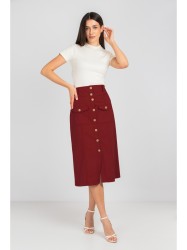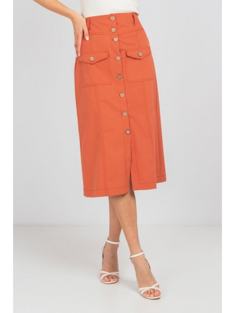 Юбка-трапеция из хлопка, с накладными карманами, застёгивается спереди на пуговицы. С двумя рельефами спереди и сзади.
