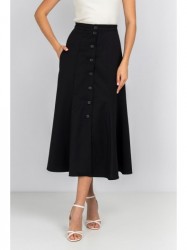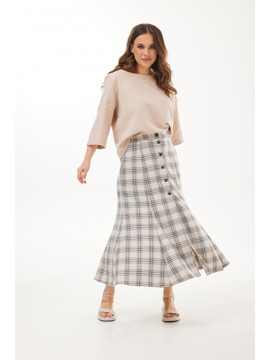 Оформить заказ →Стильная классическая юбка-годе на поясе, застёгивается на пуговицы спереди, в боковых швах карманы. По боку в поясе вставлена резинка. Свободная в бёдрах.