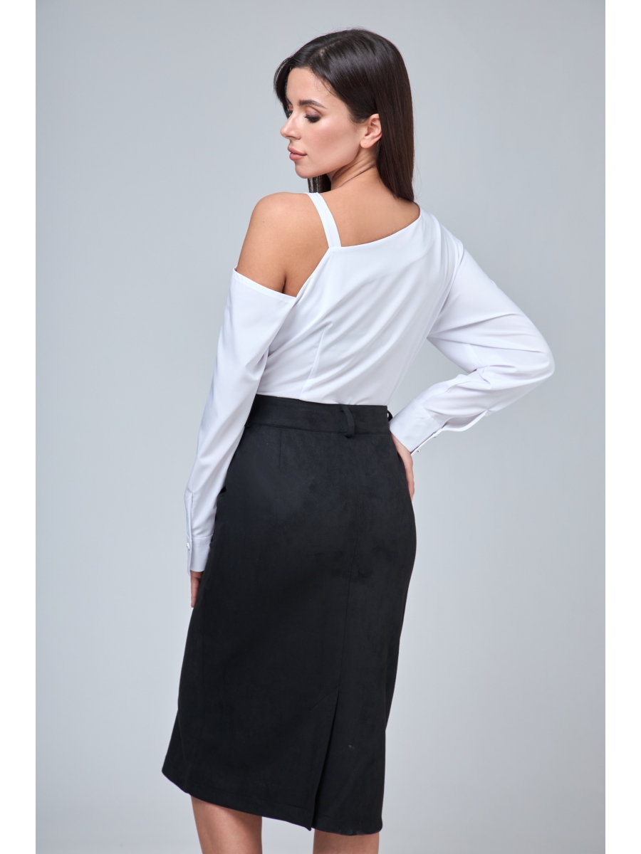 Эта эффектная юбка выполнена из плотной эко-замши, материала, хорошо зарекомендовавшего себя в носке. Её минималистичный цвет придает ей элегантный и сдержанный вид.