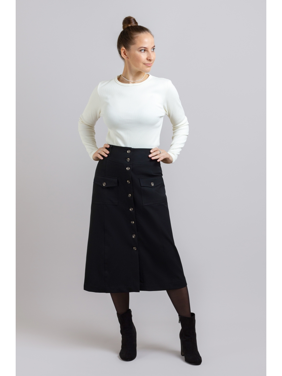 Оформить заказ →Стильная юбка-трапеция длиной миди из плотного качественного турецкого габардина, утягивающая за счет стрейча с накладными карманами. Юбку можно носить в демисезон: весна, зима и осень, подходит как на работу, так и для прогулок и отдыха. Модель с широким притачным поясом застёгивается на декоративные пуговицы, что придаёт особый шарм. Передние и задние половинки с рельефами.