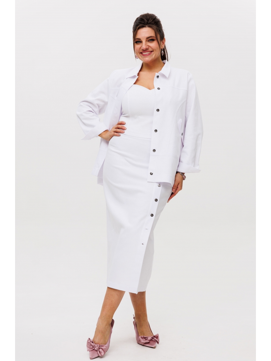 Кнопки спереди позволяют регулировать длину выреза, добавляя образу уникальность и удобство. Два кармана сзади не только придают юбке стильный вид, но и обеспечивают функциональность.