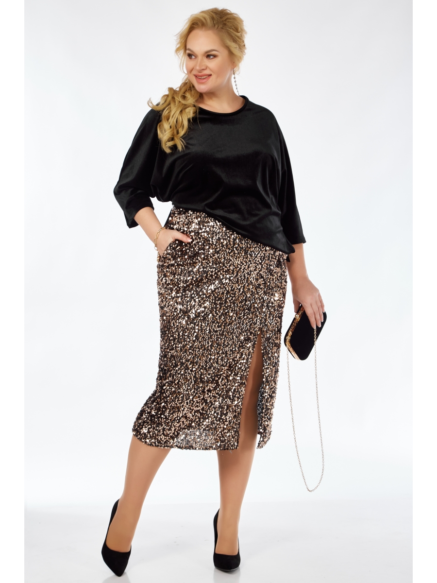 Оформить заказ →Юбка женская полуприлегающего силуэта, выполнена из ткани пайетки, с отрезной кокеткой, разрезом и карманами в боковом шве.