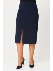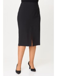 Юбка прямого силуэта, с небольшой кокеткой в верхней части, которая обработана обтачкой, спереди обработан разрез-шлица. Заднее полотнище со средним швом и талиевыми вытачками, застегивается на потайную молнию. Юбка на подкладке.