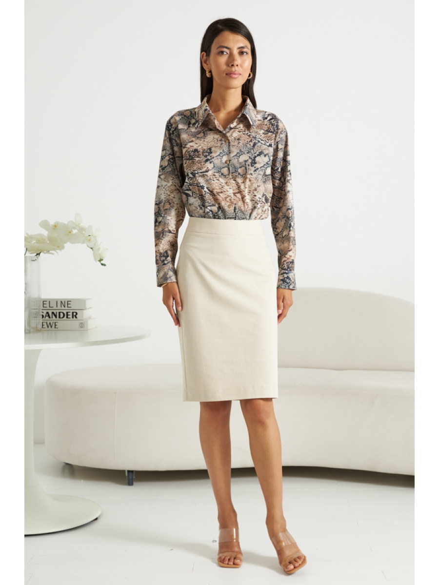 Оформить заказ →Юбка прилегающего силуэта из хлопковой ткани. Сзади по среднему шву застёжка-молния, снизу разрез. Пояс притачной.