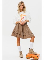Юбка женская текстильная с воланами расширенная к низу. Верх юбки обработан поясом с резинкой.
