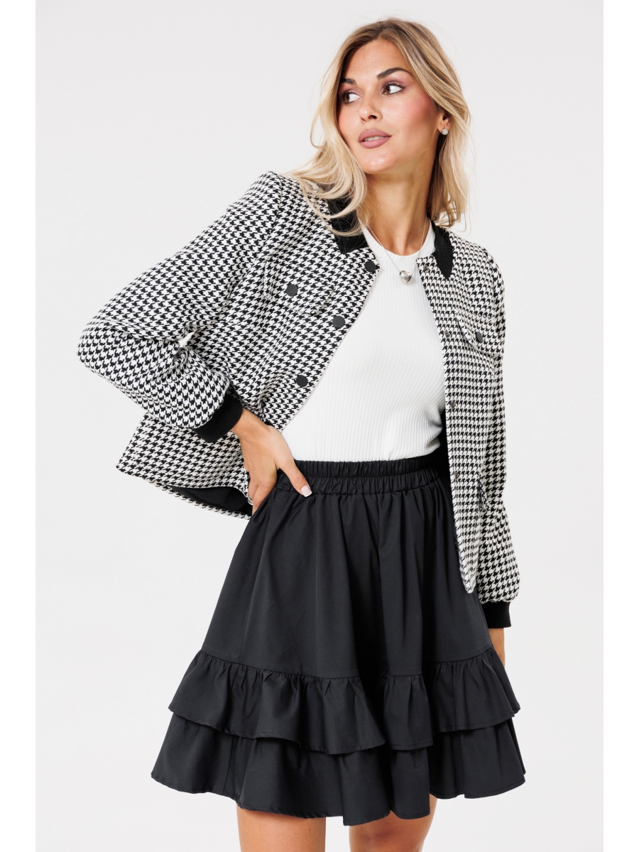 Юбка женская текстильная с воланами расширенная к низу. Верх юбки обработан поясом с резинкой.