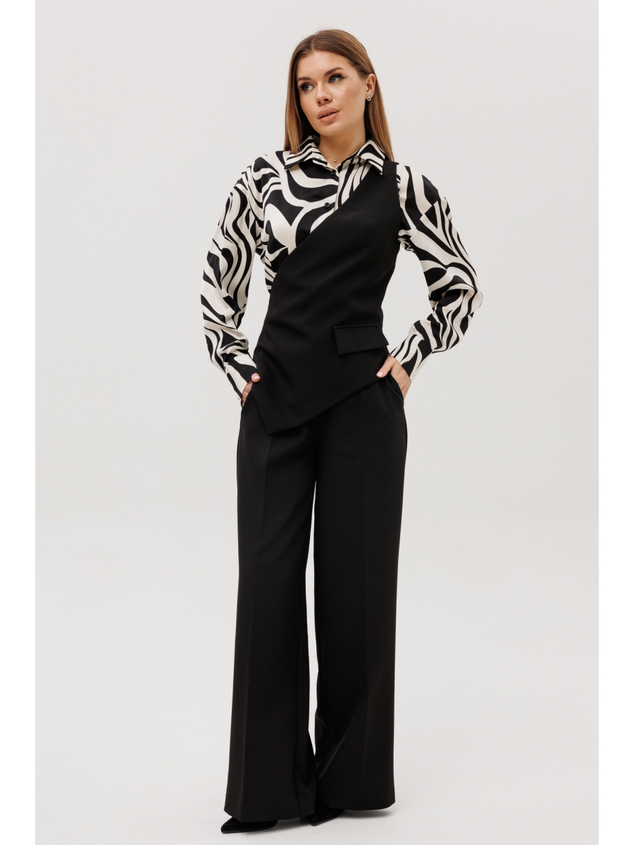 Оформить заказ →Женский жилет с уникальным асимметричным дизайном, объединяющим классическую элегантность и современные детали. Основная часть выполнена в насыщенном черном цвете, что придает изделию универсальность. В качестве контраста используется ткань с мелким геометрическим принтом в черно-белом цвете, добавляющая жилету изысканности. Декоративный клапан на передней части подчеркивает изысканный вкус, а фигурный низ добавляет игривости и женственности. Застежка на разъемную молнию, расположенная в боковом шве, обеспечивает удобство при надевании и снимании, делая модель практичной в повседневной носке.