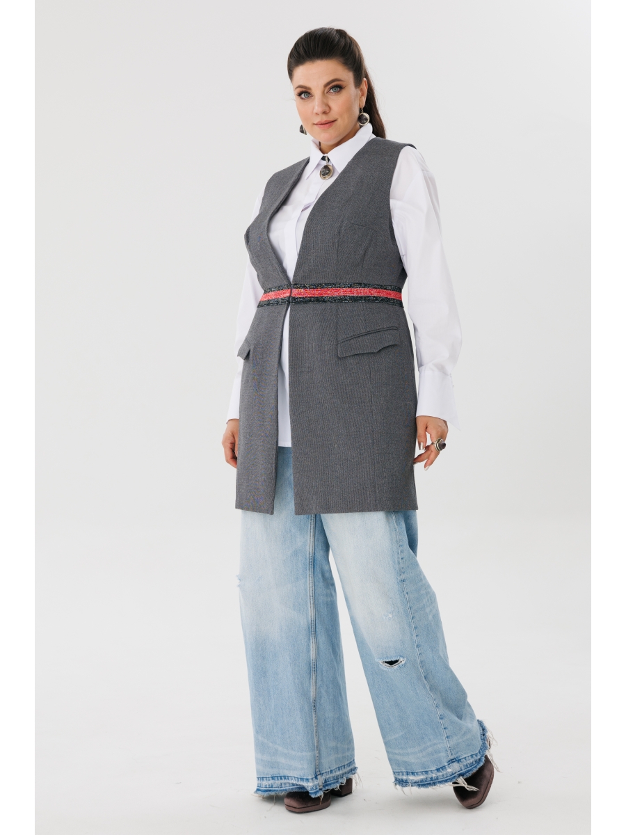 Жилет удлинённый из ткани костюмно-плательного ассортимента с отделкой по линии талии.