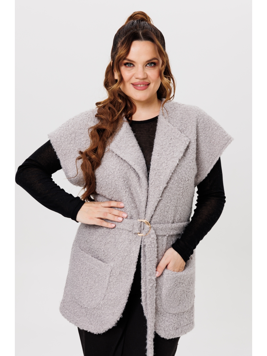 Женский жилет средней длины станет «must have» в гардеробе этого сезона. Сочетает в себе элегантность и функциональность, и подойдет к любому стилю одежды. Можно носить как поверх лонгслива, так и классической рубашки, водолазки; как с кроссовками, так и на шпильке. Жилет со спущенным плечом, выполнен из трикотажа с эффектом «букле» с небольшими вкраплениями люрекса, без подкладки, по переду два настрочных кармана, в комплект входит пояс.