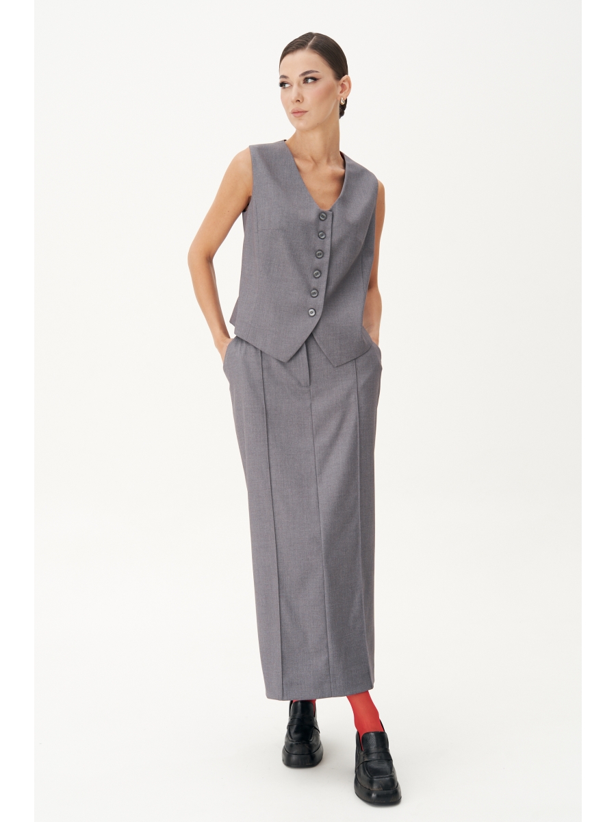Оформить заказ →Жилет классический, полуприлегающего силуэта с центральной застёжкой, фигурным бортом и V-образным вырезом. Полочка с отрезным бочком и нагрудной вытачкой. Спинка с центральным швом, отрезным бочком, талиевой и плечевой вытачкой.