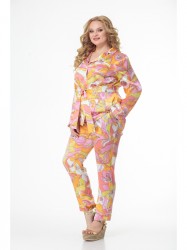 Брючный костюм выполнен из нескольких видов ткани: вискозы, сатина и шелка в разных цветовых решениях и призван создать ощущение комфорта и роскоши одновременно.