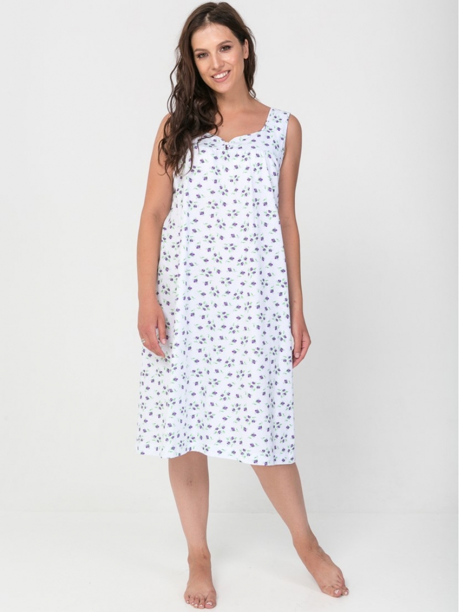 Сорочка ночная женская прямого силуэта, с кокеткой по переду и спинке, без рукава. Горловина и пройма обработаны окантовочной бейкой из основного сырья.