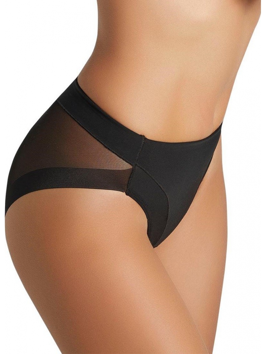 Трусы-слип с завышенной линией талии. Усиленная коррекция в области живота и бедер. Выполнены из упругого эластичного полотна спереди и тонкой полупрозрачной сетки сзади. Ластовица хлопковая.